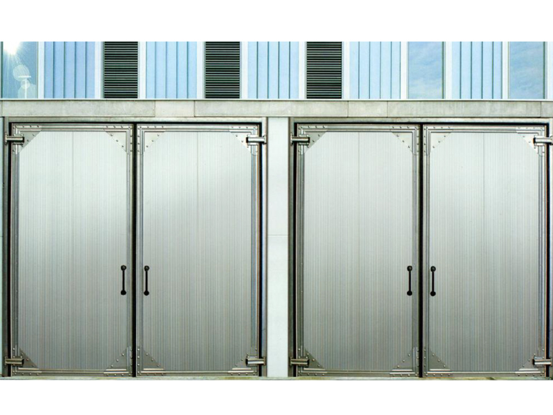 ■门扇边框采用冷轧方钢组合焊接,一般门板采用硬质聚氨脂夹芯板,高密度聚苯乙烯夹芯板或岩棉夹芯板。